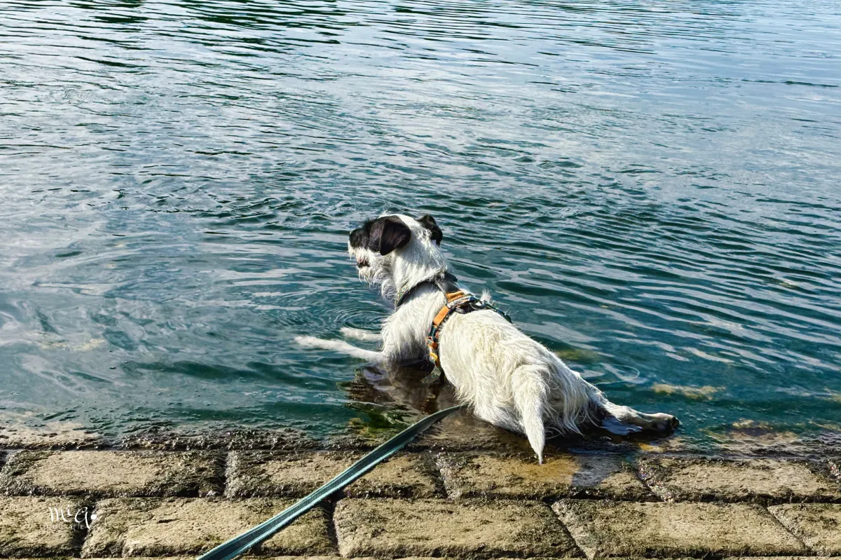 Ein Spazierweg führt direkt am Wasser entlang – für Gwenn-Du ein kleines Paradies. Doch dann ein unerwarteter Moment: Plötzlich zog er mit aller Kraft Richtung Wasser. Ich liess ihm etwas Leine, in der Annahme, er sei durstig. Stattdessen kehrte er mit einer toten Gans zurück. Der Schreck sass tief – und es brauchte einiges an Überredung, damit er sie wieder losliess.