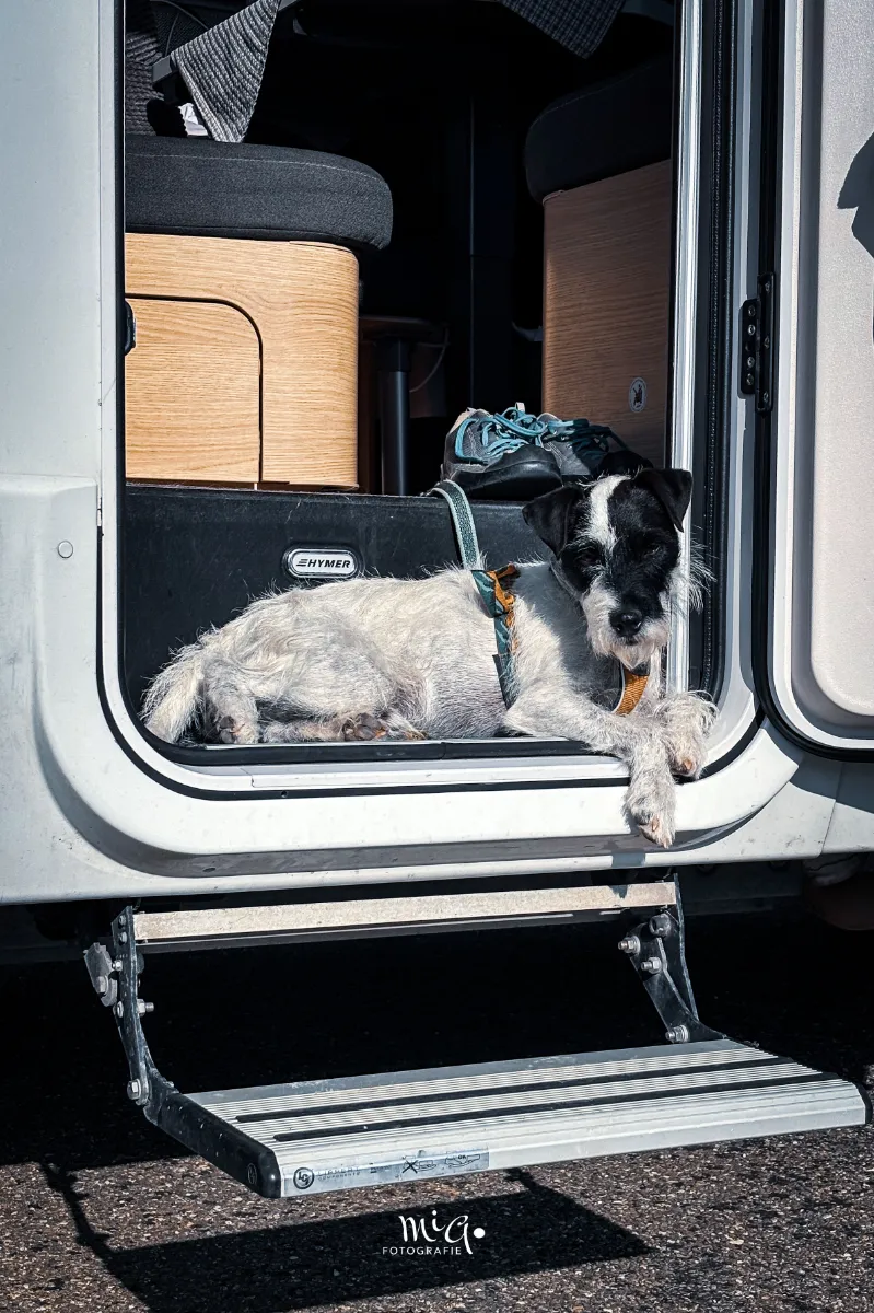 Zurück beim Wohnmobil gibt es eine kühle Glace und einen Kaffee. Michel gönnt sich eine Ruhepause für den Rücken – die Schmerzen wollen einfach nicht nachlassen. Mittlerweile haben sich weitere Wohnmobile auf dem Platz eingefunden. Einmal mehr sind wir froh, schon früh angekommen zu sein, denn in der Hauptferienzeit wird es am Nachmittag oft schwierig, einen Stellplatz zu finden.